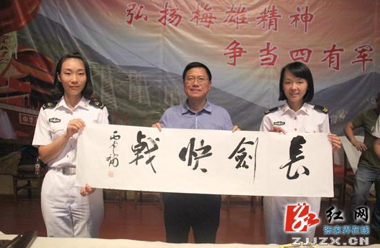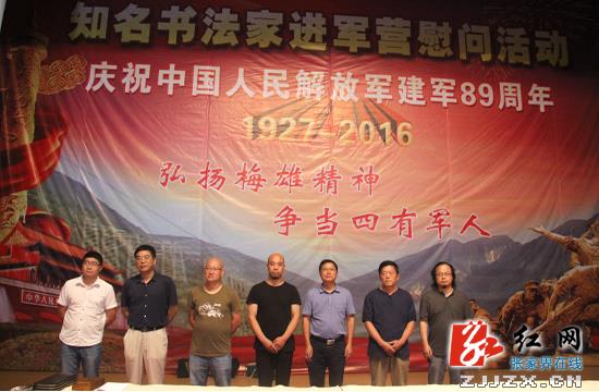 慈利县委书记邱初开(右三)一行人开展“书法进军营”慰问。
