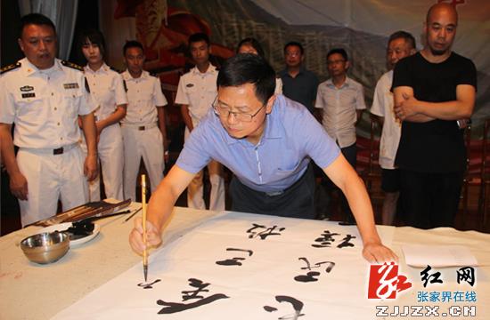 慈利县委书记邱初开现场挥毫献艺。
