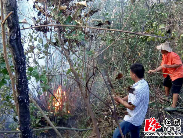 接到群众电话报警后,该镇立刻组成救火应急小队赶赴现场进行灭火,村干部、群众闻讯后也纷纷自发加入到救火队伍参与灭火。经过近两个小时的努力,山火被扑灭。