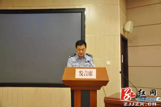 张家界市公安局党委委员、副局长黄翔介绍了开展“猎狐2015”专项行动的成功经验