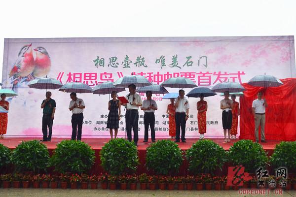 红网常德站8月10日讯(分站记者 朱志姣 通讯员 李飞)8月9日是传统的七夕节,中国邮政《相思鸟》特种邮票首发式在常德市石门县成功举行。二百多名集邮爱好者冒雨前来,共同见证“相思鸟”在石门“首飞”。当天,“相思主题邮局”也在石门壶瓶山景区挂牌成立。