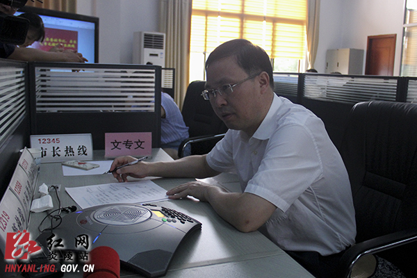 湖南炎陵县委副书记、县长文专文在株洲市政府接听“12345”市长热线