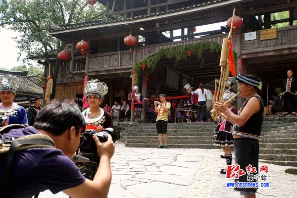 8月24日,湖南省民族宗教事务委员会组织湖南日报、省红网等主流媒体深入绥宁县寨市乡西河街、上堡古国和曲幽谷进行实地考察采访,宣传推介湖南最美民族乡。报道组一行在绥宁县民族宗教和文体广电新闻出版局负责人及寨市乡政府工作人员的陪同下,漫步省级文物保护单位西河古街,参观红七军征战绥宁指挥所旧址龙氏宗祠,感受古镇古韵的沧桑,重温红色历史;在黄桑风景区,报道组领略了“湖南最具魅力古村落”上堡古国的淳朴民风,徒步穿越了风景优美的曲幽谷。