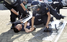 本报长沙讯 8月29日上午,星沙通程文化广场,一名手持长棍的“暴徒”突然从角落冲出,追逐一名男子。这时,警铃响起,一台特警装甲车驶来,车上下来六名特警,快速将“暴徒”制服。这是长沙县公安局开展的反恐演练过程中的一幕。29日上午,由长沙县公安局开展的长沙县《反恐怖主义法》宣传周启动仪式举办,包括武警、巡警、特警在内的民警共100人参与了此次活动。现场长沙县公安局特警中队长潘庄展示并一一介绍了防暴装甲车、防暴盾牌、镇暴叉等防暴装备。 文/记者 陈诗娴 实习生 常盼 何鸽 图/记者 华剑