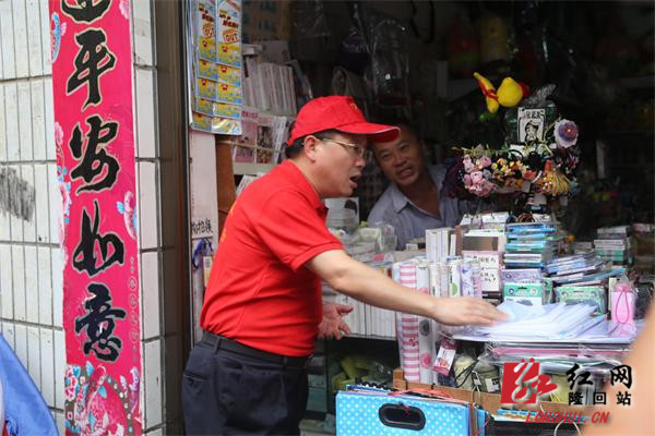 湖南省隆回县委副书记、县长马健强引导、教育临街商铺做好门前“三包”
