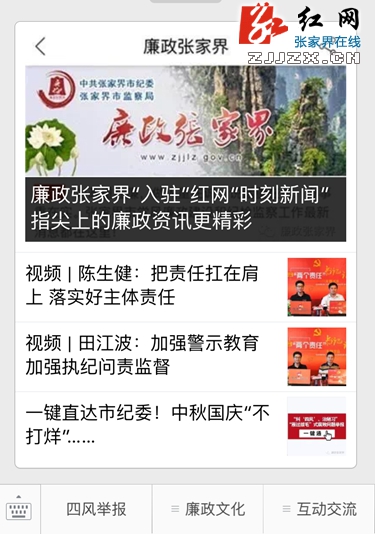 二、您可以关注“廉政张家界”微信公众号,点击“四风举报”,按相关提示进行操作,一键直通市纪委。也可以直接打开对话框,发送图片和相关文字进行举报。