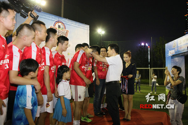 红网长沙9月6日讯 (时刻新闻记者 陈宗昊)5日晚上,“五矿万境水岸杯”2016我爱足球中国足球民间争霸战湖南赛区长沙分赛区海选决赛暨颁奖典礼在万境足球公园进行。