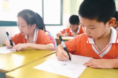 长沙市天虹小学学生使用“点正笔”答题。范远志 摄