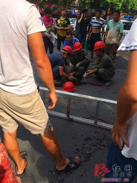 伤者惨状引来人群围观,处控一大队民警彭晋化带领队员雷惠、刘凯巡逻,恰好经过此处,发现情况后马上向指挥中心报告,并联系医院。同时,安排队员疏导交通,维持秩序,指导工友现场自救等候救援,直至120救护车赶到。