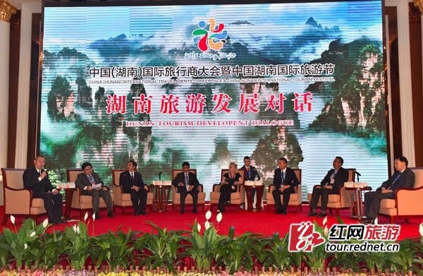 红网张家站9月13日讯(分站记者 杨忠武 张丽桦 向韬 张潘)9月12日下午,中国(湖南)国际旅行商大会暨中国湖南国际旅游节湖南旅游发展对话会议在张家界碧桂园凤凰酒店国际会议中心举行。湖南省旅游局副局长高扬先、张家界市委副书记刘革安等领导出席活动。对话同时邀请到世界旅游组织亚太区副主席李春隆,张家界市副市长欧阳斌,老挝新闻文化旅游部市场宣传司司长萨利,俄罗斯圣彼得堡国际合作协会理事会主席穆德拉克·玛尔卡丽塔,中国南方航空股份有限公司湖南分公司副总经理袁富忠,北京大学博雅方略咨询集团副总裁、博雅方略规划设计院副院长、总规师、上海院院长梁建军,泰国旅游协会常务理事梁昭云等国内知名专家与国际旅行商代表参加。