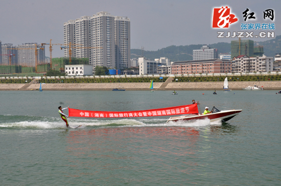 红网张家界站9月13日讯(分站记者 范漫 通讯员 董明勤)9月12日,中国(湖南)国际旅行商大会暨中国湖南国际旅游节(以下简称“一节一会”)在张家界宝峰湖景区拉开帷幕。与此同时,为营造良好的节日氛围,一场盛大的摩托艇精英赛在华天城边市民广场码头附近的水面隆重举行。