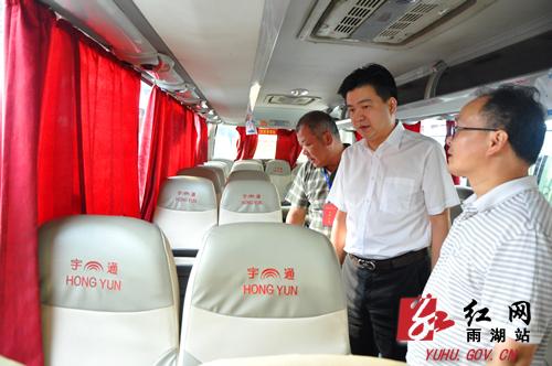在湘潭市长途汽车站,何锋登上大巴车检查相关情况