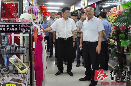 在湘潭义乌小商品城,何锋一行对市场内的疏散通道、安全出口、消防设施设备、消防安全责任制度等情况进行了检查。检查中,何锋发现商场内部分经营户将商品摆出店外,挤占了消防安全通道、逃生通道,他要求企业负责人要立即进行整改,并加强员工和经营户消防安全意识。在湖南皇爷槟榔有限公司,何锋换上防护服走进公司生产厂区,查看槟榔流水线以及制作过程,了解员工状况以及企业生产经营情况。何锋指出,监管部门对劳动密集型企业要定期进行“回头看”,形成动态机制;企业要做好消防安全应急演练,防患于未然,并切实维护好员工的切身利益。