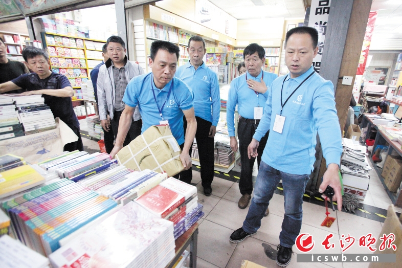 定王台书市内,安全监管人员和信息员正在进行隐患大排查。目前,芙蓉区14个街道(园、局)均设立安全信息员队伍,成为守护家园平安的生力军。均为长沙晚报记者 陈飞 摄