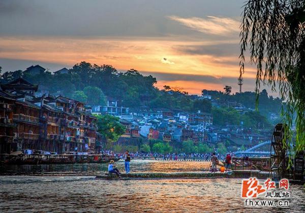红网凤凰站9月22日讯(通讯员 曾文松)9月21日,秋日下的凤凰古城沱江边,始建于明朝的虹桥、黄永玉先生设计捐建的雪桥、古老的水车和跳岩,在夕阳的映衬下,或抹上一缕红,或镀上一层黄,置身其中,让人在凤凰秋日的美景里流连忘返。
