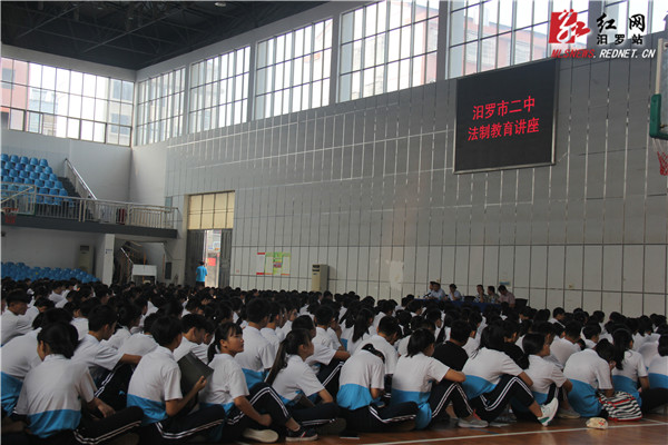 红网汨罗站9月26日讯(分站记者 李亚)9月25日上午,湖南省汨罗市人民法院派出法官来到市二中,以“以案说法,拒绝校园暴力”为主题,为高一学生上了一堂生动的法制讲座,帮助他们增长法律知识,提高预防犯罪能力,维护自身权益,促进健康成长。讲座在师生中引起了强烈反响。