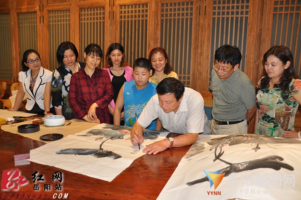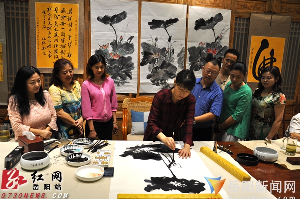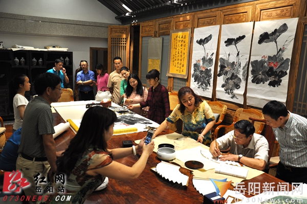 北京画家岳阳采风期间,游览了君山岛、荷花世界、南湖等景区。与岳阳书画家郑本笃、万岳云等交流切磋,现场,北京画家作画,岳阳书法家代书题字,共同书写“水墨情缘”。
