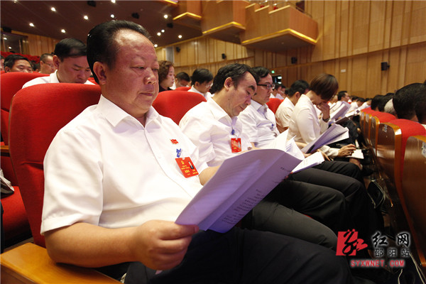 红网邵阳站9月28日讯(分站记者 王清 邱文丽)9月28日,在邵阳市第十一次党代表会第一次全体会议即将开始前,与会代表纷纷身着正装走入会场。会议期间,各位党代表认真听取工作报告,会风良好。
