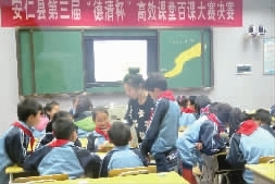 如何提高教师的教学能力,县教育局花了不少心思。2014年,县教育局制定和实施了《安仁县中小学“教研训实”一体化区域协作片教研工作方案》,将全县分为六个片区,要求一月一主题,一月一活动,每个学校一年承担一次片区活动,通过区域连片协作,实现 “教、研、训、实”一体化,“班主任工作经验交流”、“特岗教师上岗培训”、“先进教学经验推介”等主题轮番上演,尤其让农村学校教师的教学能力突飞猛进。