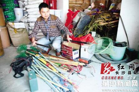 近期,长沙县行政执法三分局查处7起非法电捕鱼行为,依法暂扣捕鱼工具,并对当事人进行处罚。 盛磊 摄