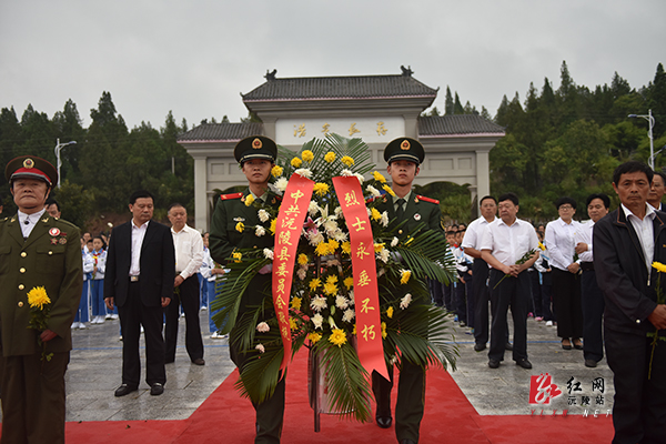 钦代寿诵读祭文,副书记、县长周重颜主持公祭仪式,全体县领导、各战线负责人、老红军代表、驻地官兵、社区居民代表和部分小学生参加公祭活动。
