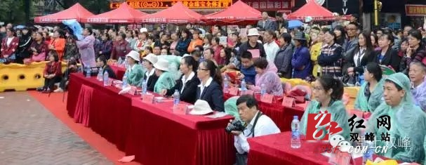 红网双峰站10月1日讯(分站记者 龚闯 田园)9月30日上午,由湖南省双峰县委宣传部、双峰县文体广电新闻出版局、双峰县电视台、双峰县老干部局、双峰县老年体协、双峰县妇联、双峰县文明办共七家单位联合主办的“欢乐潇湘·文化双峰”第五届广场舞大赛总决赛在汇丰步行街广场举行。全国乡村广场舞大赛湖南组委会副主任夏松,县委常委、宣传部长彭云辉,副县长李兴魁,县政协副主席朱尧丰,县副处级干部朱闻天等参加活动。