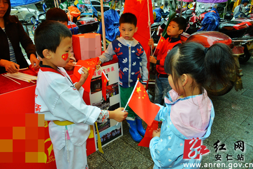 当天,有部分商铺向市民免费赠送五星红旗