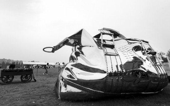 景育民创作的公共艺术作品《行囊》。图/记者陈正