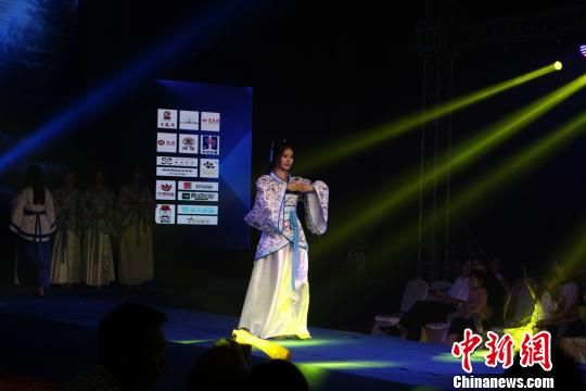 图为一名选手在进行汉服秀表演。