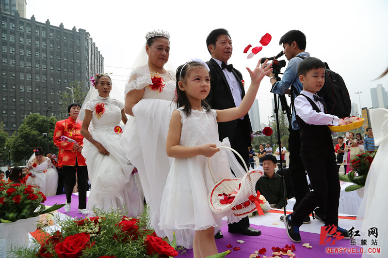 红网岳麓站10月9日讯(通讯员 谭敏琼 黄俐娇)品菊茶、话家风、穿婚纱、走红毯……10月8日,岳麓区望岳街道的奥克斯缤纷广场前坪人头攒动、红飞翠舞,这里正在举办道德模范关爱礼遇活动,活动以“牵手金秋诉真爱•情暖夕阳话家风”为主题,为辖区22对金婚老人举办了盛大的金婚庆典。这些金婚老夫妇,其中婚龄最长的有63年。