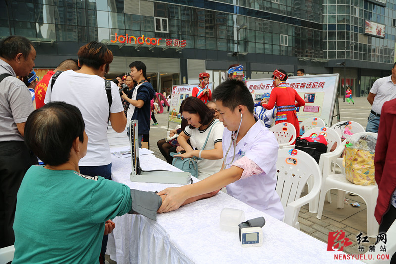 望岳卫生院的医疗志愿者也提供了测血压、血糖等义诊服务