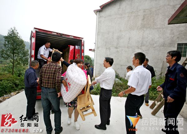 岳阳志愿者将满载扶贫物资的车队开进了村