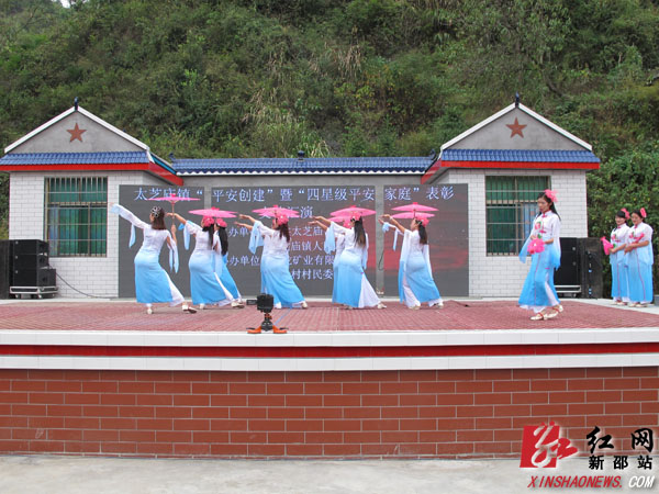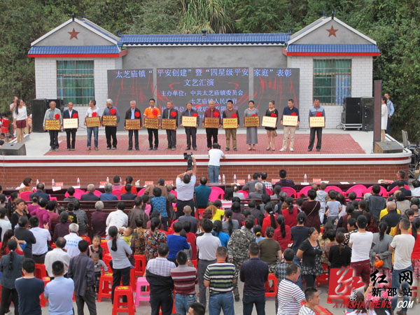 红网新邵站10月11日讯(分站记者 隆清泉 通讯员 何旭华)10月8日下午,一阵阵喝彩声从湖南省新邵县太芝庙镇社中村文化广场传来,该镇“四星级平安家庭”表彰在歌舞声中拉开了帷幕。该镇各村组社区的群众演员通过歌舞、曲艺等形式,为老百姓呈上了一道生动活泼、通俗易懂的文化大餐。汇演中表彰了全镇40个“四星级平安家庭户”,并现场进行了平安建设和普法知识的宣传。这是新邵县抓实基层社会治理,大力疏通社会“神经末梢”的一个缩影。