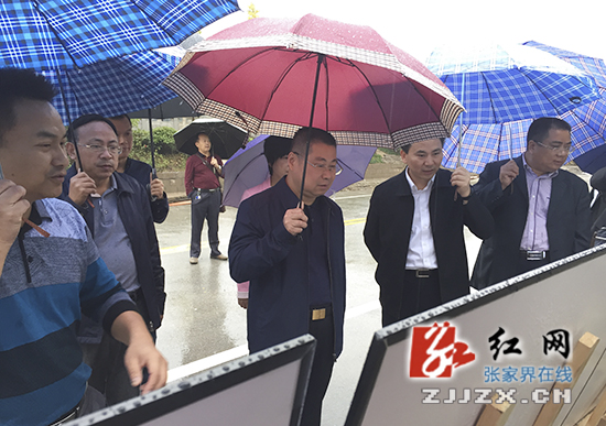 红网张家界分站10月20日讯(分站记者 李森林)10月20日上午,湖南省张家界市委常委、市委组织部部长艾可知冒雨带领市政府办、市棚改办、市住建局等部门负责人,就澧水大桥两端棚改项目进行调研。