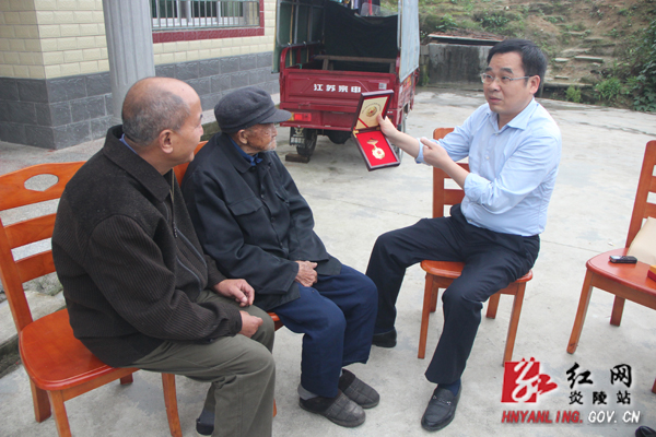 红网炎陵县分站10月22日讯(分站记者 潘璨 彭新平)在长征胜利80周年到来之际,湖南炎陵县委书记黄诗燕带着党和政府的关怀,深入垄溪乡秋田村看望慰问老红军谭萃维,向他致以诚挚地问候和崇高的敬意。
