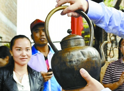 80多年来,陈土保将此壶视为珍宝,经常擦拭。这么多年过去了,该壶依旧油光发亮。“这把壶,是陈老家的传家宝哩,以前有人出价万元都没卖,他要将这把铜壶世代传下去……”村主任陈长富说。