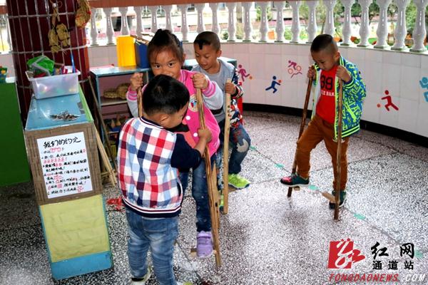 红网通道县分站10月28日讯(通讯员 何梦怡 李尚引)“小朋友你这是在做什么呀?”“嘘!一会再告诉你。”4岁的潘梦琪抿嘴一笑。10月26日,笔者走进湖南省通道县幼儿园,被眼前充满童趣的踩高跷玩耍深深吸引了。