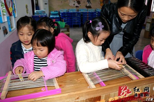 美食课上,孩子们自制泡茶、腌鱼、腌肉侗族美食;美工课上,孩子自己设计鞋垫、学着纺织。多彩的民俗活动,给孩子们带来无穷的乐趣,也成了幼儿园里最靓丽的风景线。