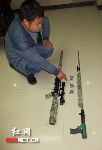 10月29日,安仁县公安局接到群众举报称,平背乡豆某等人经常晚上偷偷开车上山打猎,带来社会安全隐患。当晚8时,县公安局治安大队治枪缉爆民警在当地巡查时,抓获了从山岗打猎返回的豆某、张某,从现场查扣的皮卡工具车内,搜出气枪、射钉改装枪各一支,以及铁沙子、空包弹、铅弹等弹药若干。