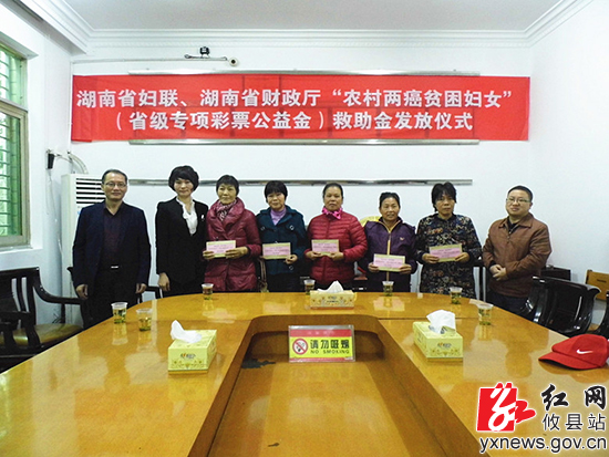 “两癌”指的是宫颈癌和乳腺癌,农村“两癌”贫困妇女救助项目是省委、省政府保障和改善民生的重大举措。在发放仪式上,攸县妇联主席唐华南对接受救助的妇女姐妹们表示慰问,并叮嘱她们树立坚定的信心,保持乐观的心态,与病魔抗争到底,争取早日康复。
