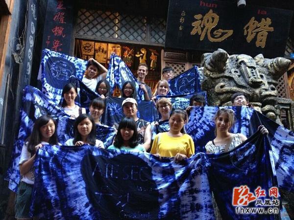红网凤凰县分站11月2日讯(记者 龙磐)秋雨朦胧,如梦如幻。11月1日,沿着凤凰古城区内蜿蜒的青石板路,记者来到湖南省湘西土家族苗族自治州苗族蜡染技艺传承人王曜的“蜡魂”蜡染体验馆,只见游客有的在选购蜡染作品,有的现场体验创作……现场一片热闹景象,丝毫不像旅游淡季。