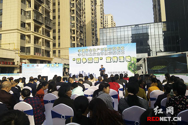 11月3日下午,长沙市芙蓉区马坡岭街道开展争创安全生产市级示范街道、争创食品安全市级示范街道的“双争双创”主题宣传活动。