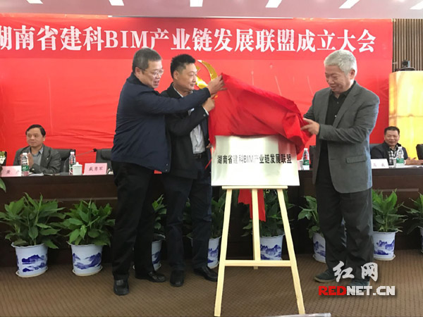 出席会议的领导为湖南省建科BIM产业链发展联盟揭牌。
