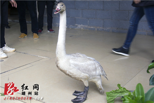 记者在靖州县林业局的小天鹅临时救护点看到,受伤的小天鹅在林业局工作人员的救护下,神态和步伐恢复从前,伤势也已经好转。