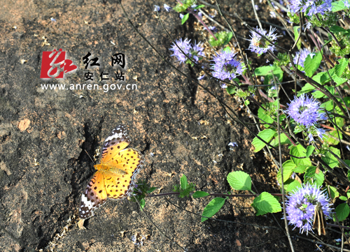 红网安仁县分站11月7日讯(通讯员 何炳文 何超)11月5日,漫步走进湖南省安仁县渡口乡数百亩面积的丹霞山景区,连绵起伏、纵横交错的丹霞山,远看似红霞铺盖,近看则色彩斑斓。这里有着中国地质学上罕见的漩涡石、神农抖药坑、神农晒药坪和黄花闺女石等自然丹霞景观。在石块上顽强生长的山花盛开了,引来了蝴蝶飞舞,更引来了雄鹰盘旋,让游客大饱难得一见的眼福。