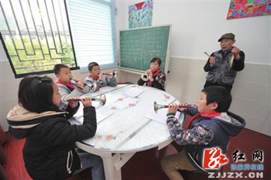天子山中心学校的唢呐课堂。 邵颖 摄影