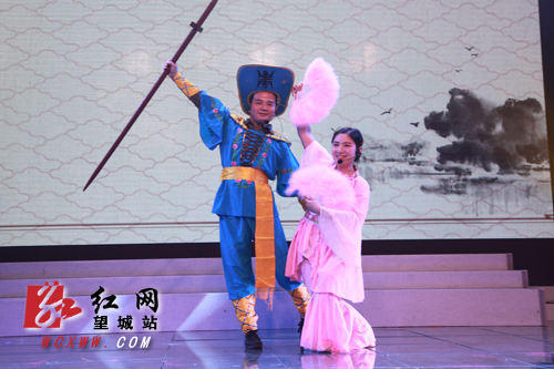 望城新闻网记者演唱戏曲《刘海砍樵》。刘赛 摄