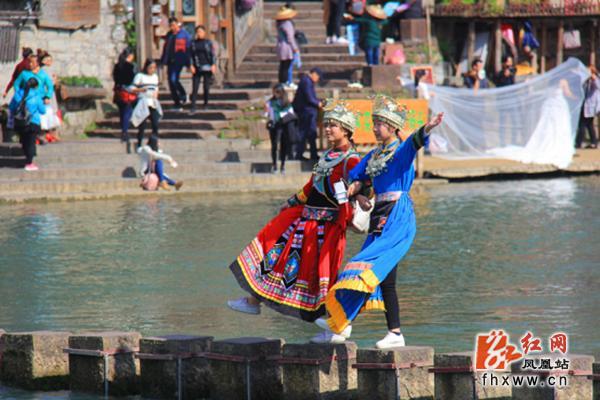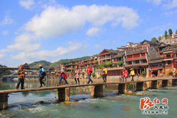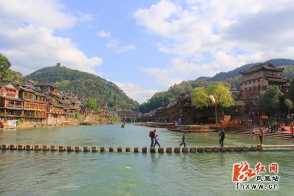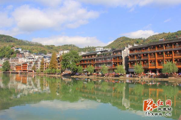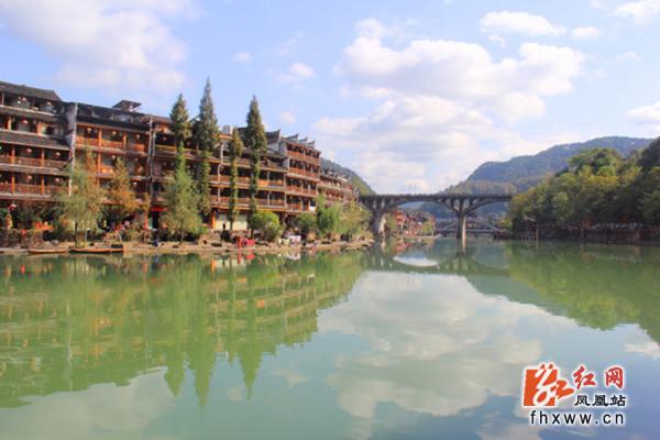 红网凤凰县分站11月11日讯(分站记者 吴玉辉)11月10日,连续数日的阴雨过后,湖南省凤凰县迎来大好晴天,冬日暖阳普照大地,凤凰古城景区如换了妆般,美景俯拾即是,闲游在沱江两岸的游人犹如身在画中。