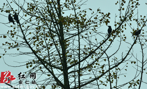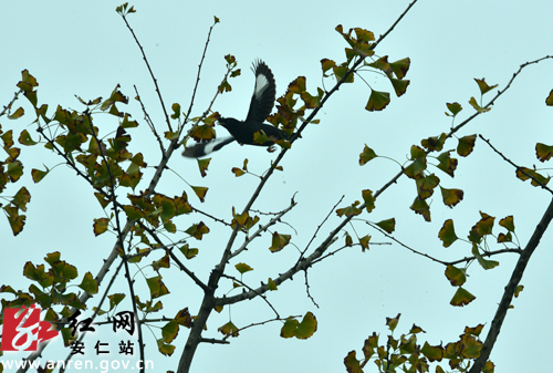 红网安仁县分站11月14日讯(通讯员 何炳文 何超)11月13日,湖南省安仁县排山河两岸的银杏树叶黄的分外妖娆,吸引着一群群八哥鸟叽叽喳喳在树上欢聚栖息。交织出人在树下走,鸟在树上飞的和谐画图。