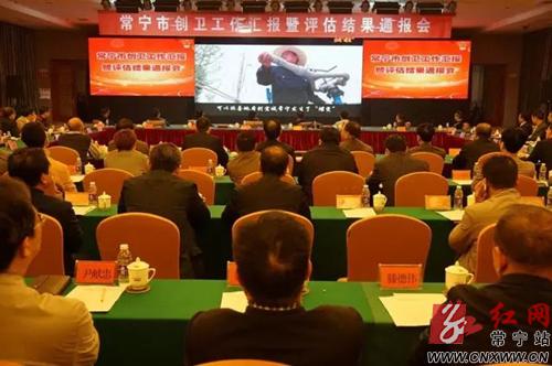 图为常宁市创卫工作汇报暨评估结果通报会现场。